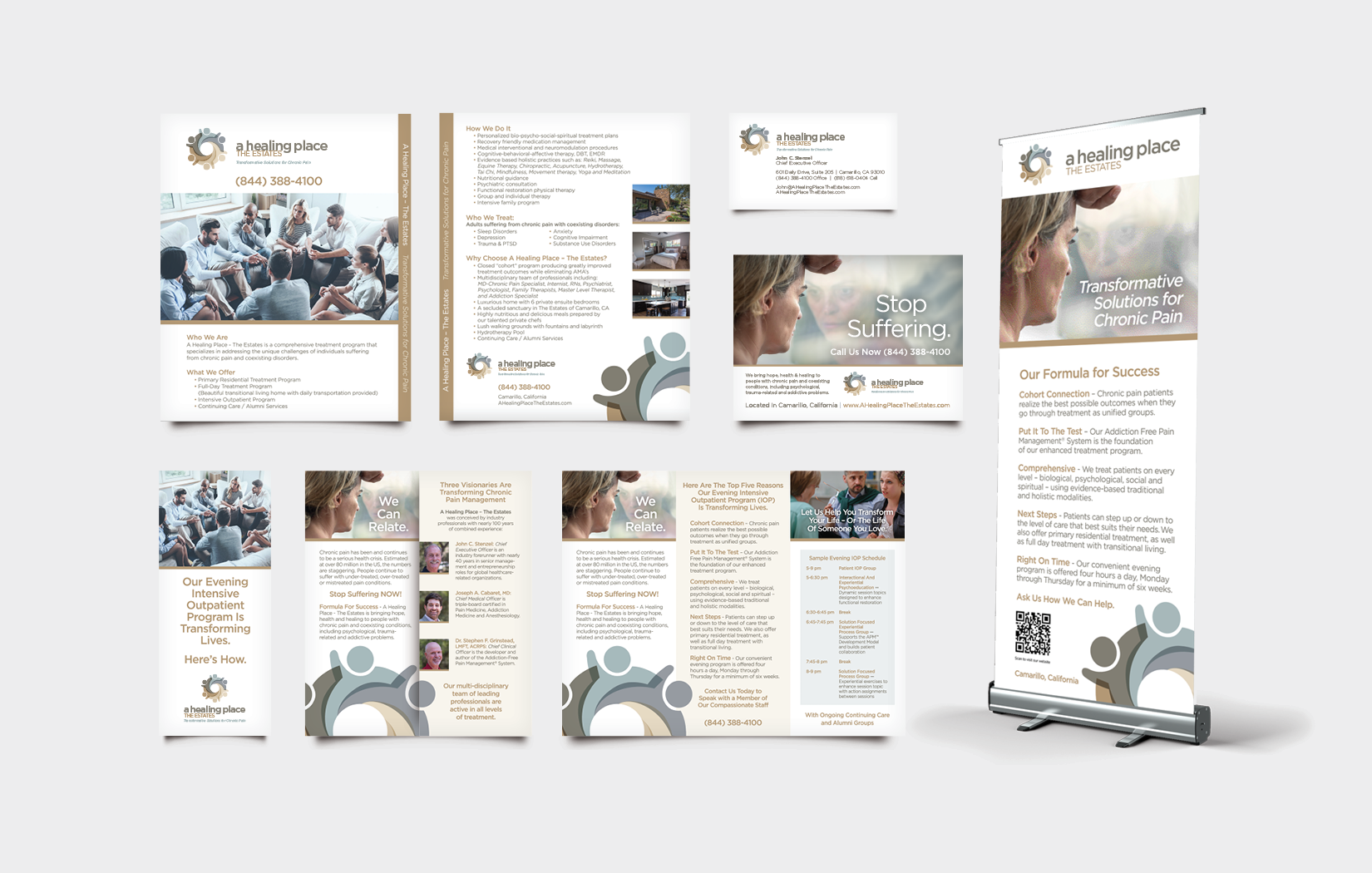 Creating a start-up venture is no easy business. Blazing a revolutionary new market trail with that very same start-up is even more challenging. So, when A Healing Place – The Estates engaged ASTRALCOM, we stepped-up. We worked closely with their executive team to develop a set of solutions and tools to convey a distinct set of characteristics to their audiences. The result was a professional and compelling set of business collaterals that included a company logo, letterhead, business cards, envelopes, print ads, trade show materials, new website and a comprehensive post-launch digital marketing strategy. Client-agency synergy is critical to delivering great performance and A Healing Place – The Estates is a great case-in-point. They’re off and running and the results are beyond expectations. We couldn’t be happier. Could you be happier with your marketing performance? Contact us and we’ll be glad to talk about it with you.