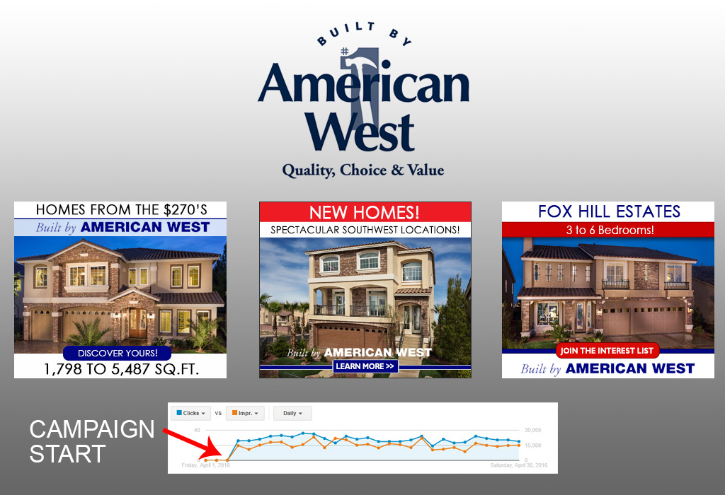 The marketing team at American West Homes was interested in trying ASTRALCOM’s targeted banner ad service – adZooks! – for a specific objective: Connecting with, engaging and driving targeted homebuyer traffic from multiple placement sources in a specific geotargeted area.